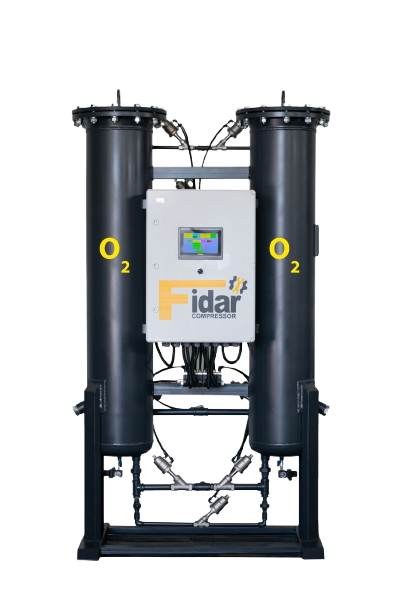 مولد های اکسیژن ساخت شرکت فیدار فراز فرتاک یک سیستم جاذب در بستر ( دو برجه Twin tower ) است که از دو مخزن آلیاژی پر شده با مواد جاذب ZMS مجموعه ای از فیلترهای هوا، سوپاپ ها، تنظیم کننده فشار و شیر های پنوماتیکی طراحی و ساخته شده است.عملکرد آن بدین صورت است که هوای خشک و عاری از گرد و غبار به سمت یکی از برج ها هدایت شده و از مواد جاذب ZMS عبور میکند که در این حین با توجه به ساختار منافذ ZMS ،نیتروژن و سایر گازها سریعتر از اکسیژن جذب میشود، در نتیجه خلوص اکسیژن جریان گاز بین 93%±2 افزایش پیدا میکند، گاز اکسیژن خروجی از بالای مخزن وارد بافر اکسیژن میگردد و پس از همسان سازی فشار گاز به خط مصرف می رسد.